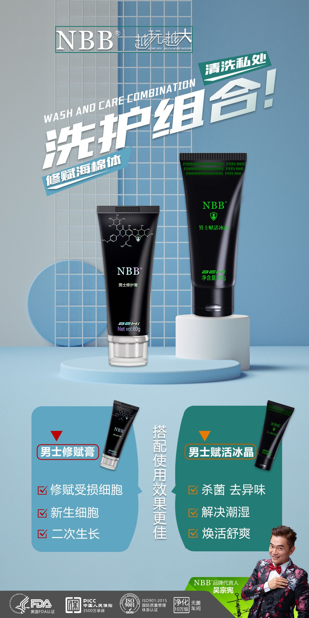 NBB男士赋活冰晶,美国量子技术 纯草本植物萃取,每天清洗,杀菌止痒祛异味,改善阴囊潮湿,改善前列x,激活细胞活性,延长丁丁寿命。搭配nbb修复膏高效吸收,效果翻倍。