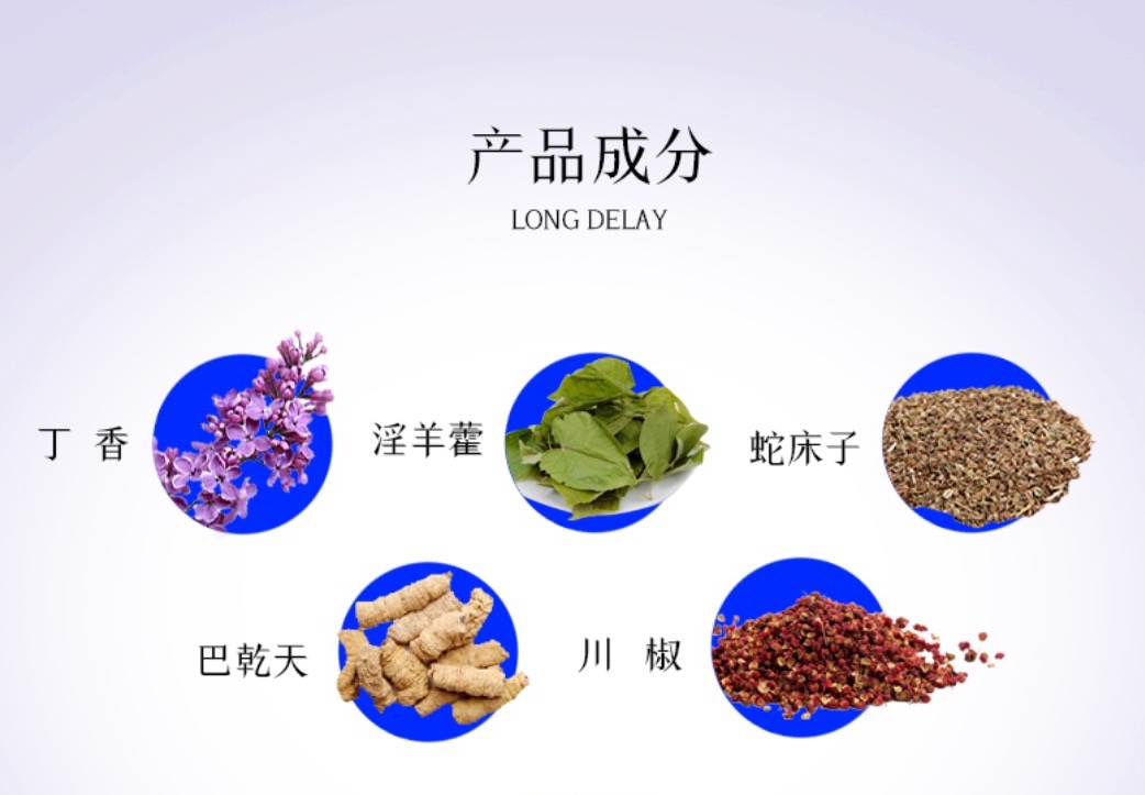 今液延时喷剂的主要成分包含多种植物提取物,如丁香、艾叶、薄荷、蛇床子、巴戟天、肉苁蓉、锁阳等天然草本植物成分。这些成分通过降低龟头敏感度来延长生活时间。 其配方以植物精华为主,不含激素或麻药成分,主要通过中草药提取物实现延时效果。可延长房事时间20-60分钟,适用于房事不足20分钟、过度手撸或使用其他产品效果不佳的人群。