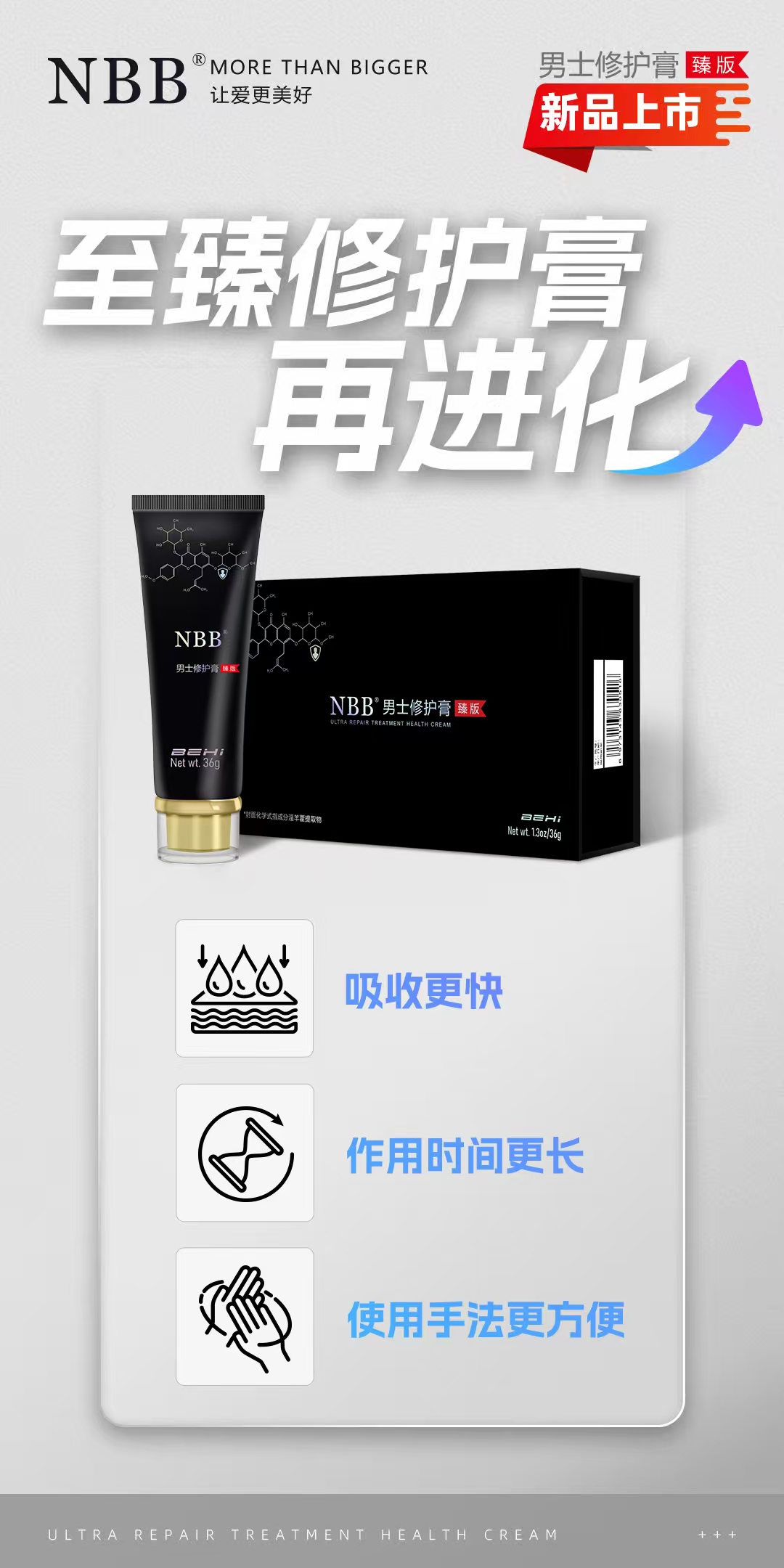 NBB至尊版修护膏全新上市。采用美国干细胞技术!10倍浓缩精华 专为你的宝贝补充营养!带来男士换新奇迹!